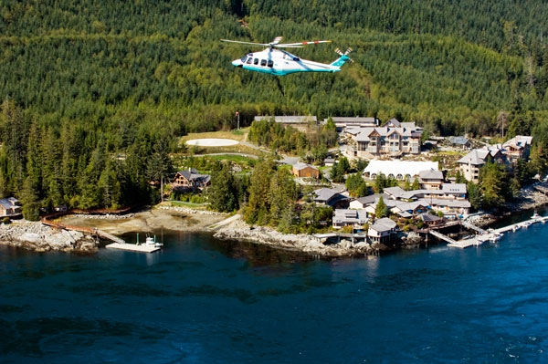 The Discovery Islands, it turns out, are almost absurdly beautiful, and as we touch down on Sonora’s pine-fringed helipad, what surrounds me is so divine I want to cut it up in to slices and eat it. The forests are alive with emerald greens and burnished gold. Spindly jetties jut out into glass-clear waters and the pebble-grey roofs of Sonora’s scattered buildings peek out from the treetops.