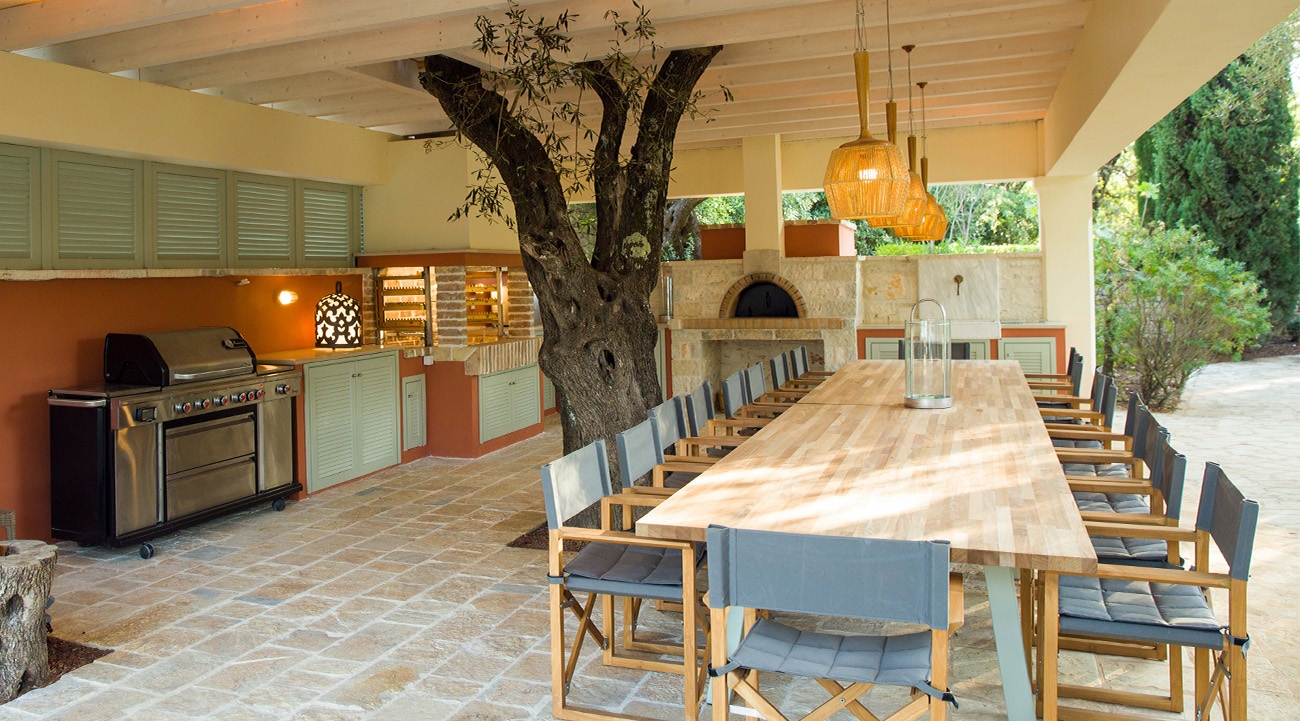 All Above properties come with a concierge – while they’re not based at the property, they’re contactable six days per week. Guests will also receive a welcome pack, daily breakfast and regular maid service. At an extra cost, additional cook service, laundry service, wine delivery, pre-arrival grocery shopping, fresh, cut flowers on arrival and a massage or beauty therapist can be arranged on request. During our first evening at Villa Soukia, we’re joined by a mixologist from one of Kassiopi’s top bars, who crafts a selection of cocktail pairings for the family-style barbecue feast we enjoy courtesy of two private chefs.