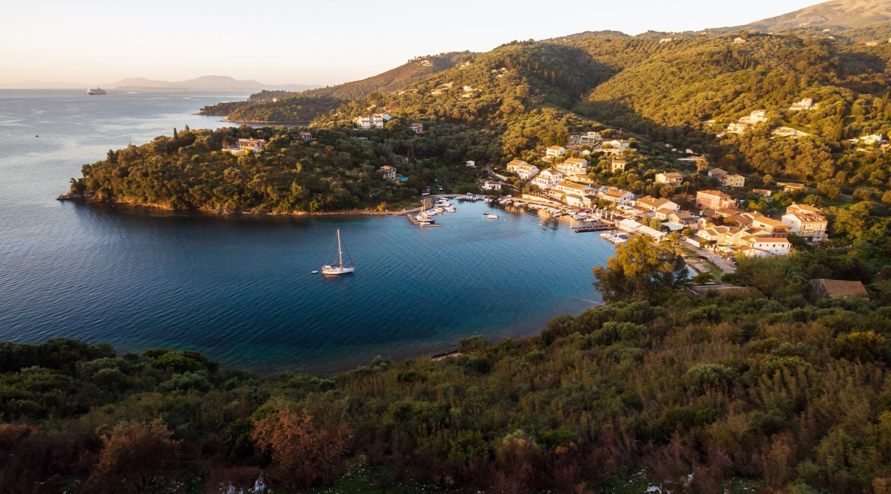 We’re exploring the northeast coast of Corfu – and boat is, of course, the preferred method of transport. This stylish corner of the island is particularly popular with affluent Brits – it’s estimated there are more than 450 villas in northeastern Corfu, and 95% of them are British-owned. Between the region’s capital, Kassiopi, and the coastal town of Barbati, around 45 villas are currently under construction, costing between €1 million and €3 million.