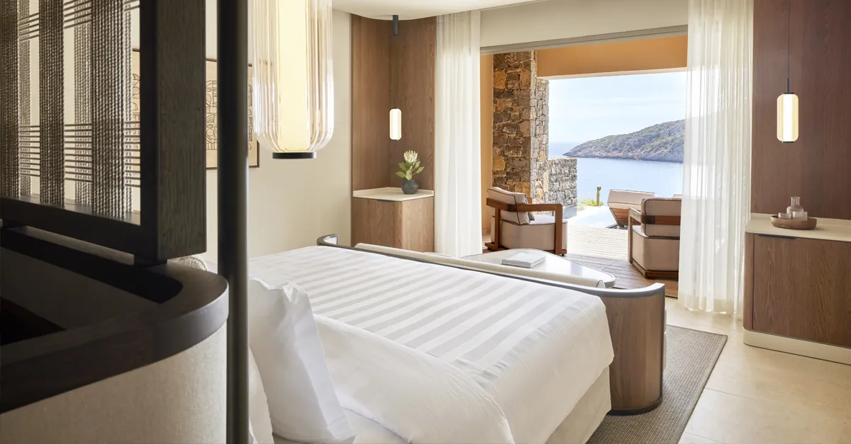 This facility alone highlights the scale of Daios Cove – it’s a sprawling resort that requires a buggy to access its 276 rooms, suites and villas. If our son wasn’t at the kids’ club, he was splashing about in the pool or enjoying fancy sorbets from La Glace Alain Ducasse. He was endlessly happy, which meant we were endlessly relaxed – the ultimate outcome for a family holiday.