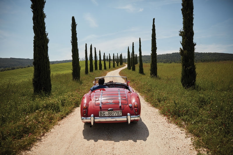 If I could conjure up an image of a Tuscan setting in my mind, it wouldn’t be quite as idyllic as the view I’m taking in from the seat of my bike. We rise and dip along peaceful winding roads, the serenity of our ride only occasionally interrupted by a passing car.