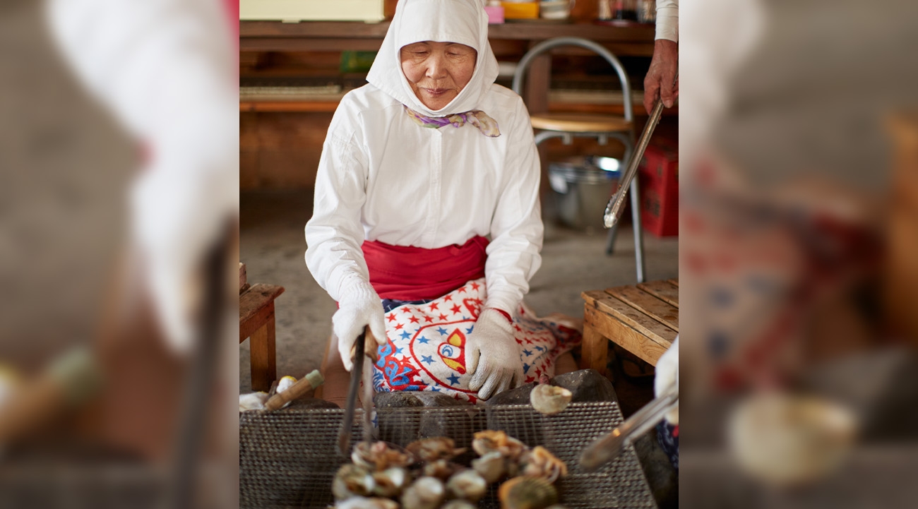 On clear mornings you might see the ama, meaning ‘women of the ocean’, out at work, their wooden baskets floating on the water’s inky surface. Alternatively, visitors can embrace the ultimate sea-to-table experience and join the women post-dive in wooden ama huts along the shoreline for a traditional barbecue seafood lunch. Across the haze of scented smoke rising from coals in the centre of the room, we’re immersed in the world of this ancient art. Our young ama has been diving for just a few years – while her peers were drawn to the big cities, she pursued ama due to a love of the outdoors – but the average age for most is 60, she says, with some women working into their 80s.