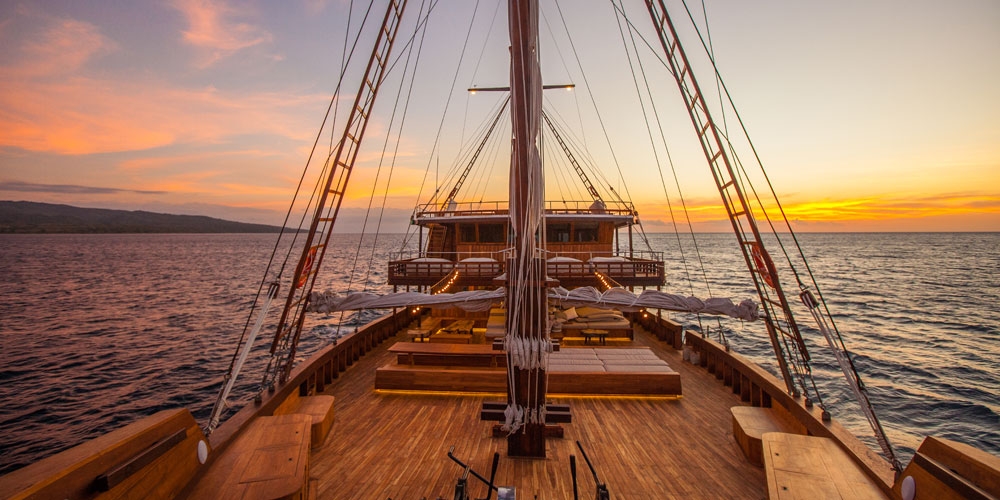 Raja Ampat is vast, and just a few guesthouses dot the archipelago. That being the case, most people travel around by liveaboard, and those who really want to travel in style opt for a phinisi, a traditional Indonesian sailing yacht.
