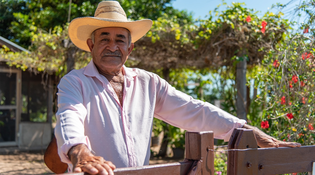 He’s dressed in a straw hat with a knife hanging from the leather belt around his hips – a cowboy indeed. “Drought is the biggest problem we face,” he tells me through a translator, as we pick fresh fruit from an acerola tree. “Not jaguars.”