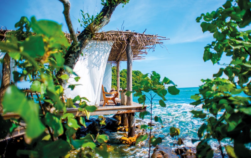 Footwear is always optional on the two rainforest-covered isles that make up Song Saa. This famed beach resort, lolling in Cambodia's southern and remote Koh Rong archipelago, is home to 27 thatched stone villas, strewn across the jungle canopy or perched over the warm sea. Guests are in for the full eco-luxe experience here: interiors of rustic timber, earthy stone and sleek marble sit alongside modern luxuries such as sunken bathtubs overlooking the ocean and deliciously scented Aesop toiletries. The interlocking islands are set in a 100-hectare marine reserve, which Song Saa helped to establish. Guests can kayak through dense mangroves, search for starfish with a marine biologist or enjoy a night-time dip in bioluminescent waters.