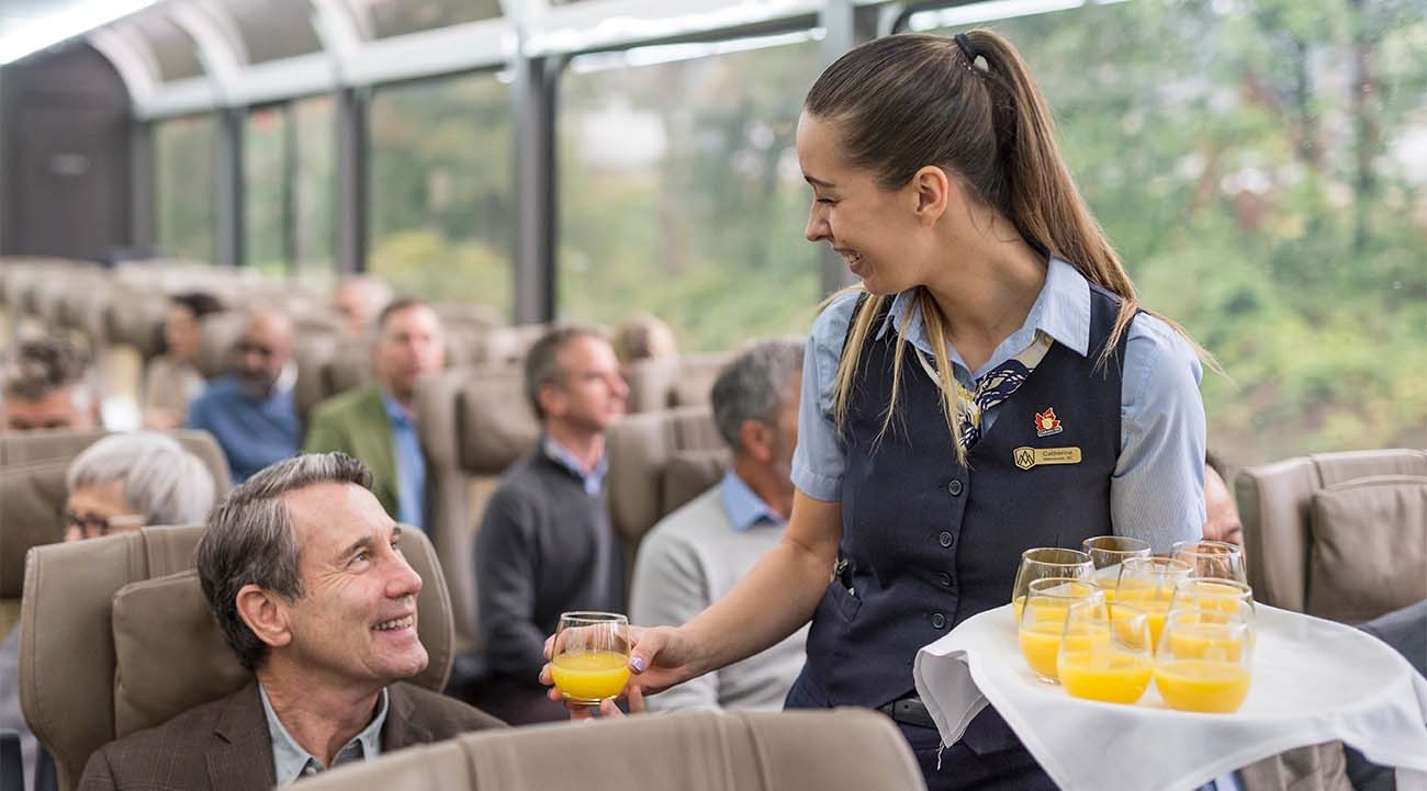 Aboard the inaugural departure, spirits are high and drinks are topped up as we pull out of Denver and begin the picturesque climb into the American Rockies, revelling in the airy, well appointed carriages and the regular flow of delicious food to our Silverleaf seats (think coriander-crusted salmon in chilli butter and honey-roasted pork loin served in a mustard glaze, washed down with limitless wine and cocktails).