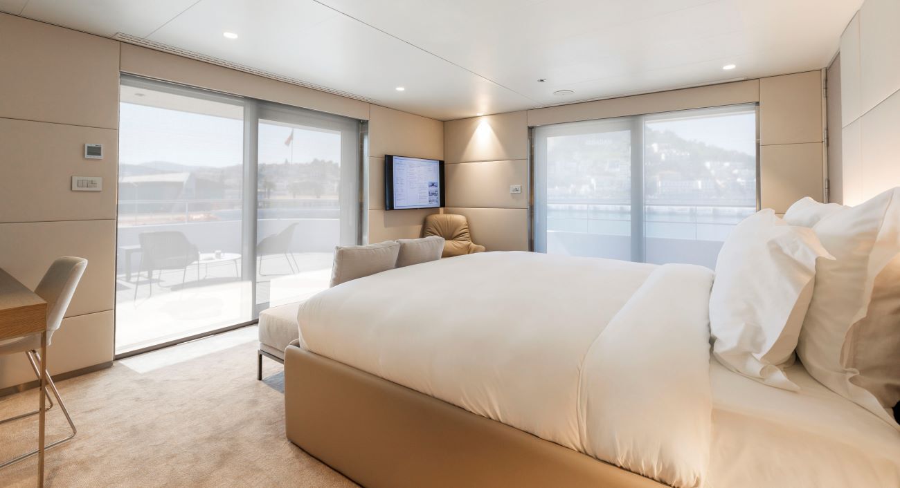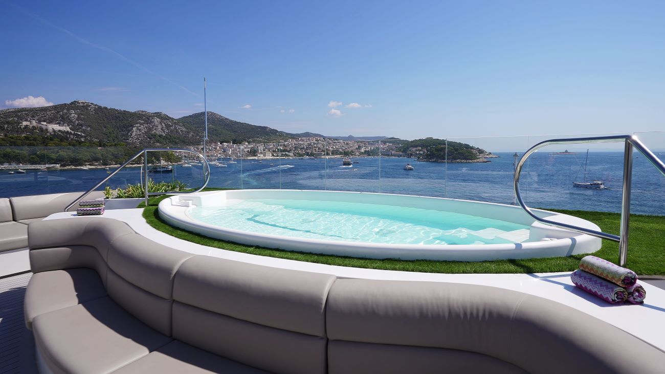 The ocean breeze lifts our spirits as we dine in the morning sun, enjoying our meals before exploring the next port of call. Between stops, many guests spend their day soaking up the rays by the stunning infinity-style Aqua Pool and relaxing on the softest, deepest sun loungers that surround it. If clients are in the mood for a little relaxation, they can hop into the hot tub. The yacht’s attentive 72-strong crew are always nearby, ready to whip up the tastiest of cocktails or bring your drink of choice – the focus is all about delivering exactly what guests want. For those seeking a bit of adventure, the marina platform is set up at select ports, where guests can dive into some fun water activities such as paddleboarding, snorkelling and kayaking. If pampering is more your client’s thing, they can check out the spa and state-of-the-art gym, where they’ll be able to join yoga classes and participate in energetic fitness activities. There’s even a salon on board to help you look your best every day.