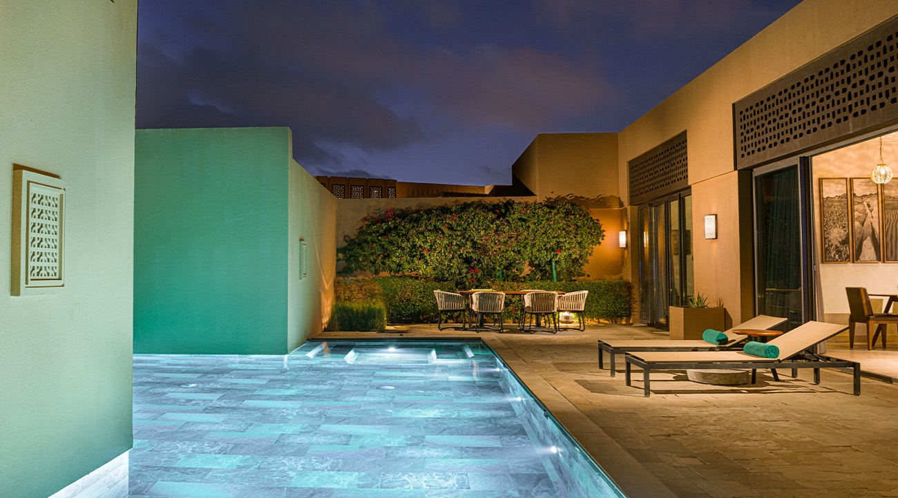 The two, three and four-bedroom villas include a private pool, a majlis-style living area and a 24-hour concierge service. Guests can enjoy speciality teas and flavoured shisha in the Al Burj Lounge, while three restaurants serve a variety of dishes from across the world.