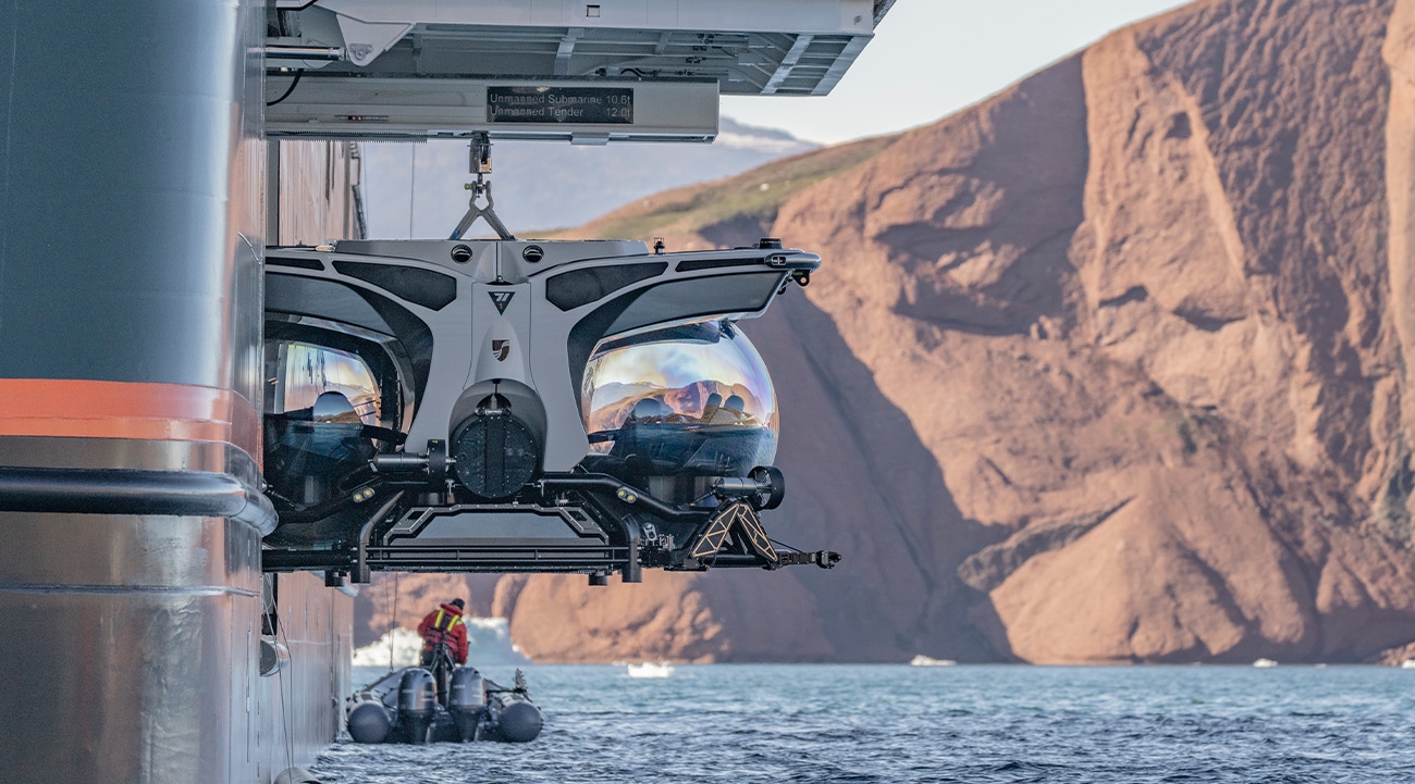 When it comes to adventuring, the vessel boasts 24 Zodiacs, eight double sea kayaks and two six-person submersibles, each of which cost $4 million to build. Equipment is bolstered by a 26-strong team of wildlife experts, scientists, historians and naturalists who lead offshore excursions and host talks and briefings in the Discovery Centre. On the terrace of deck five, there’s a small infinity pool, two whirlpools and plenty of sunloungers and places to sit. Elsewhere, there’s a spa, salon, gym and boutique selling high-end adventure gear.