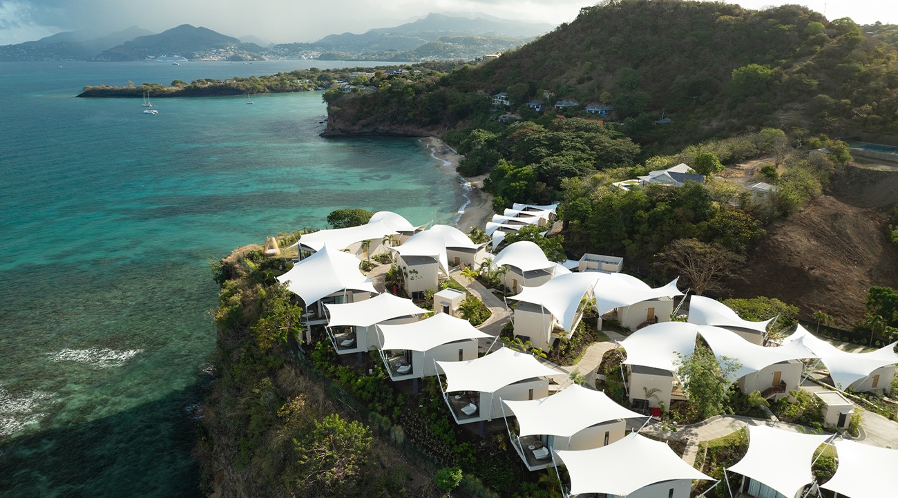 Tucked on the southwest coast of the island, the cliffside property overlooks secluded Portici Beach. Sister property Silversands Grand Anse, which guests have full access to, is about 20 minutes away, with a complimentary shuttle service available day and night.
