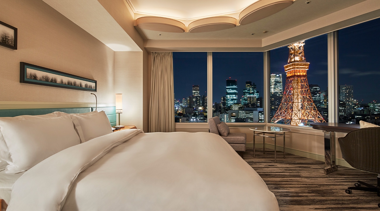 Location: Within the calming surrounds of Shiba Park and adjacent to the Tokyo Tower, a shining red-and-white city landmark. The hotel – technically located in the Minato district – is about 30 minutes’ drive from Haneda Airport, while the closest metro station is Akabanebashi.